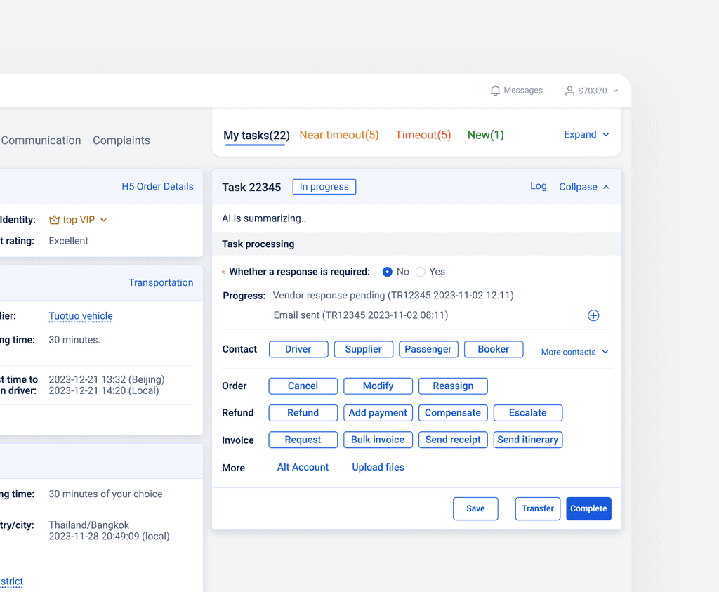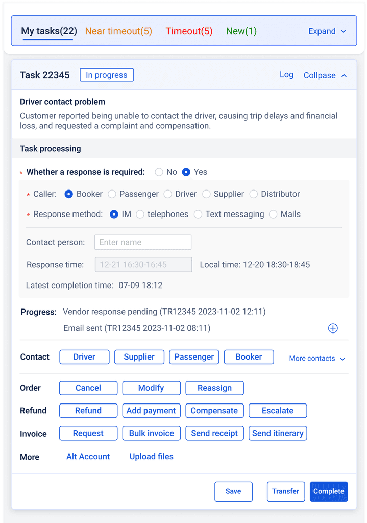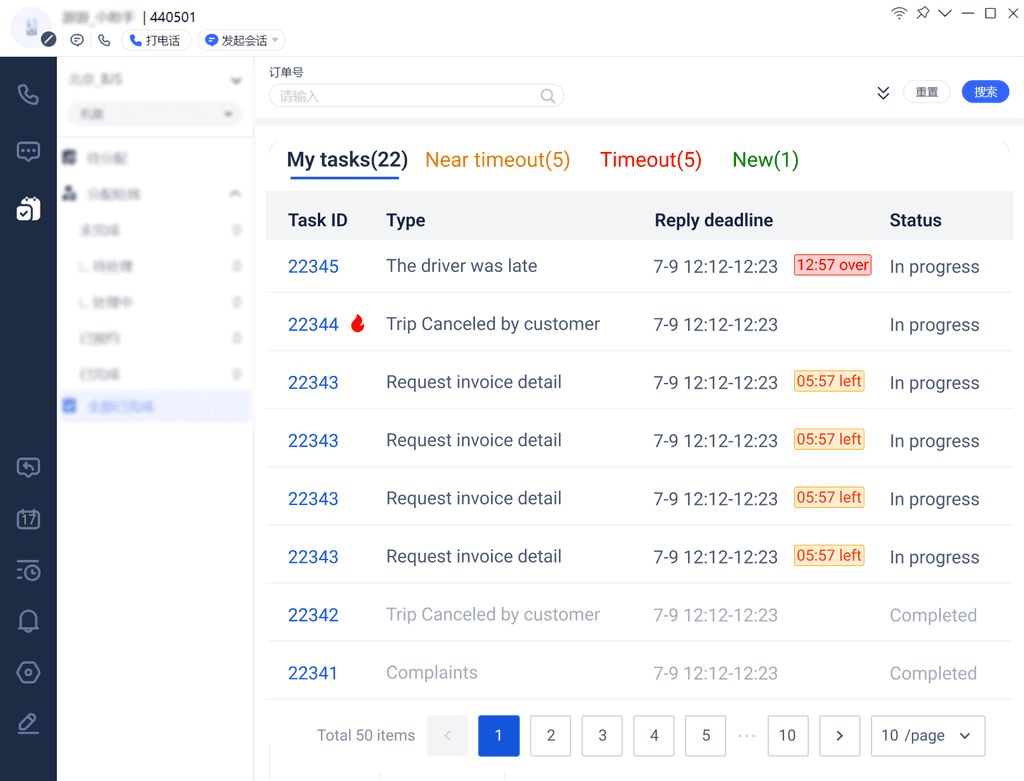 Second-line agents handle tons of transferred tasks and must complete them quickly when taking breaks. The expanded My Task module helps them switch and complete tasks efficiently.