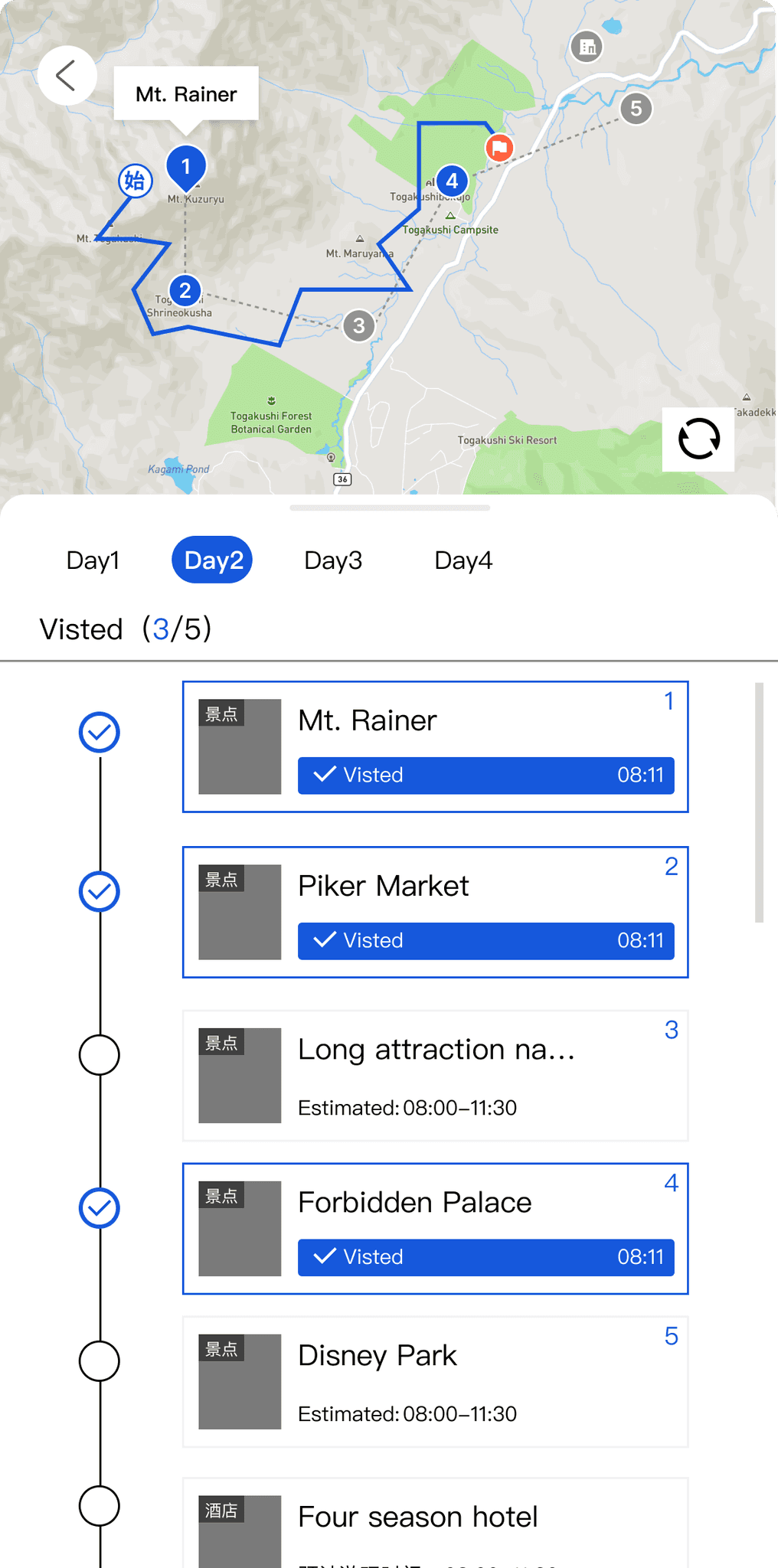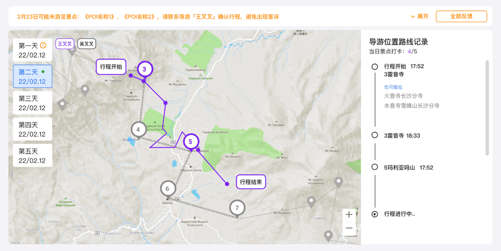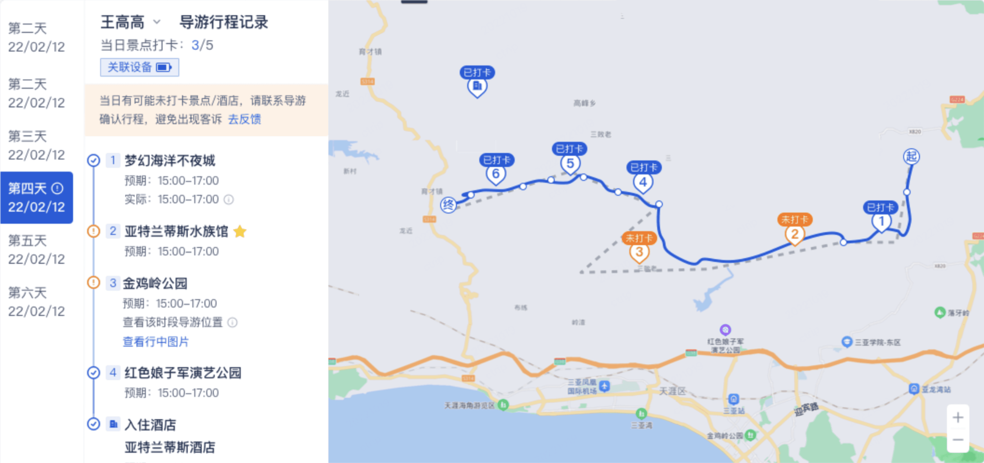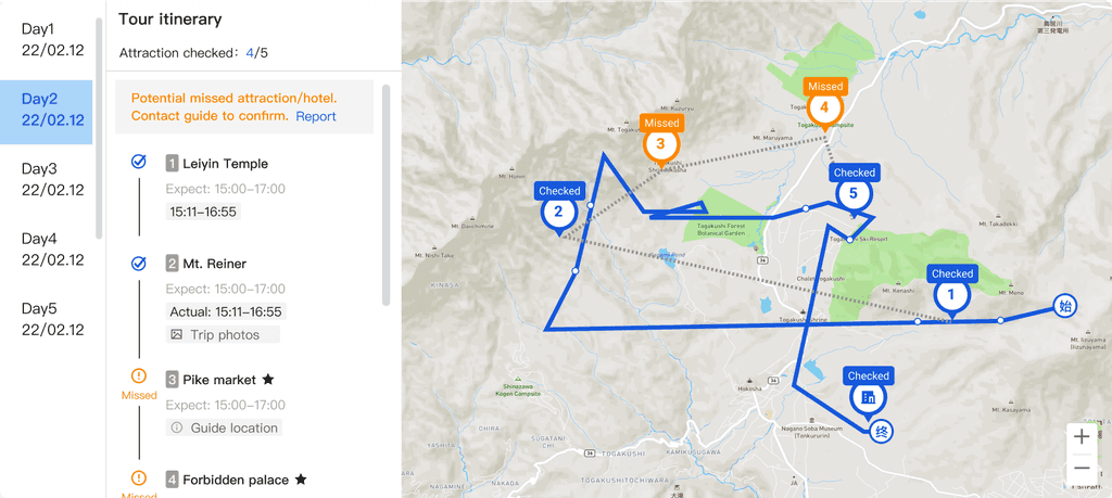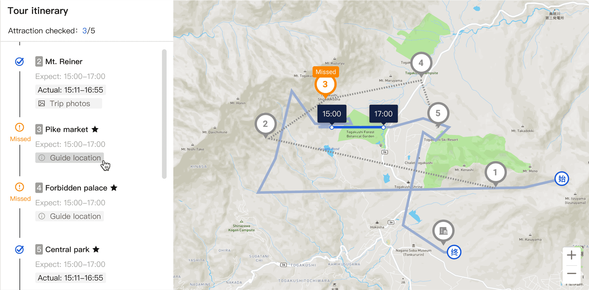 When an attraction is missed, suppliers can check the guide’s location in the expected time period.by hover.