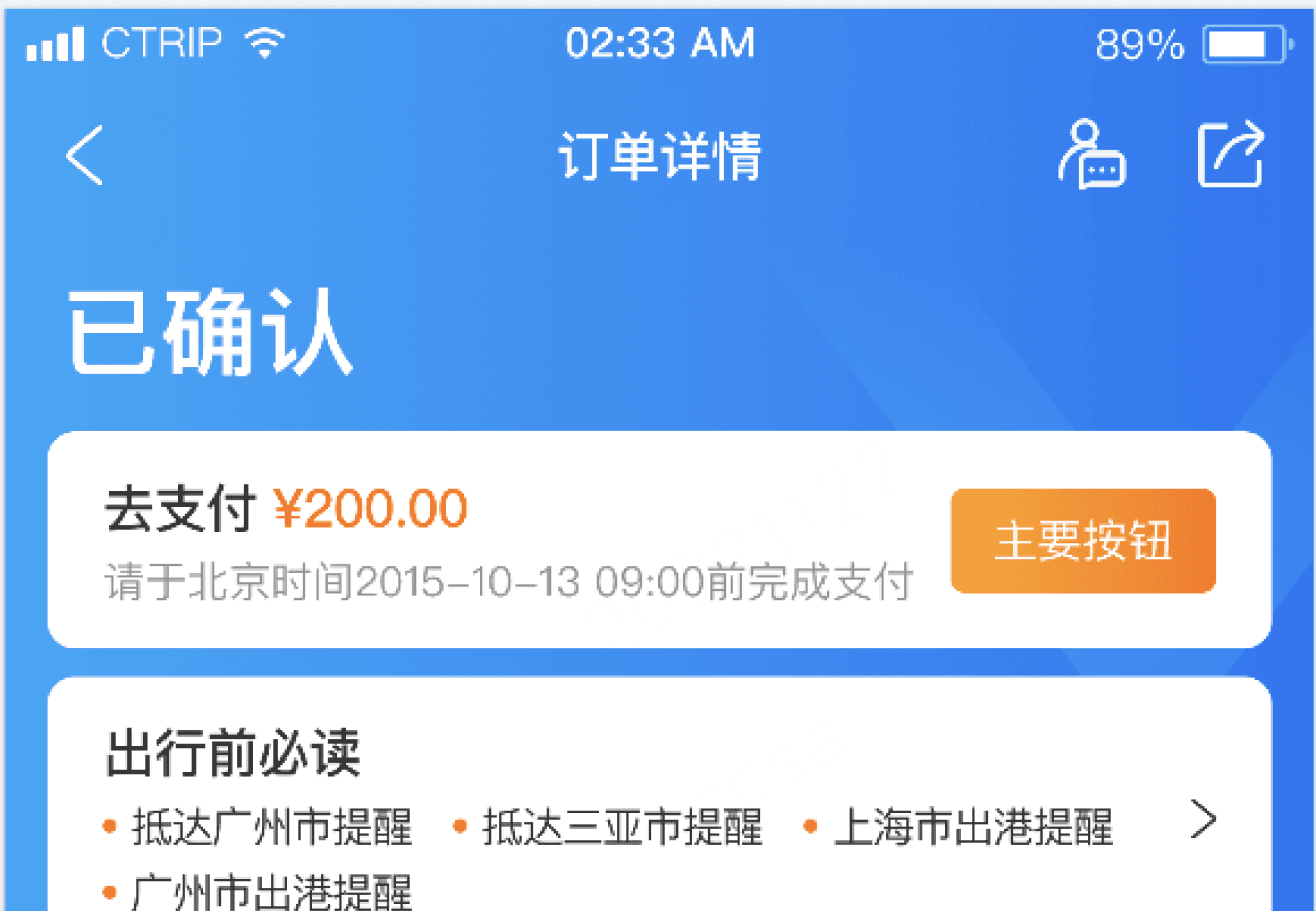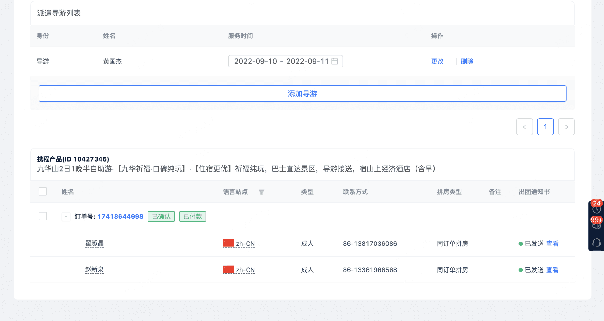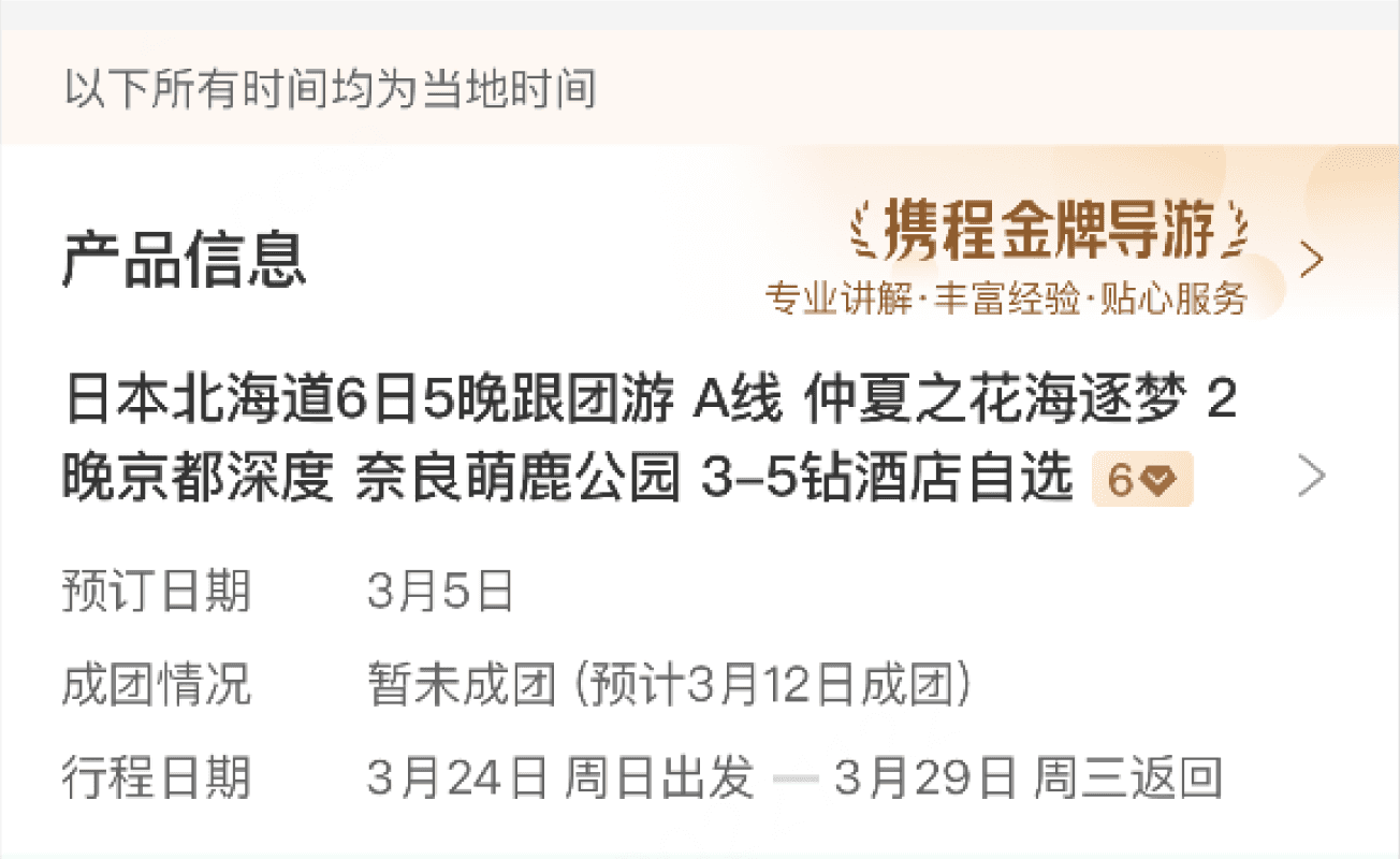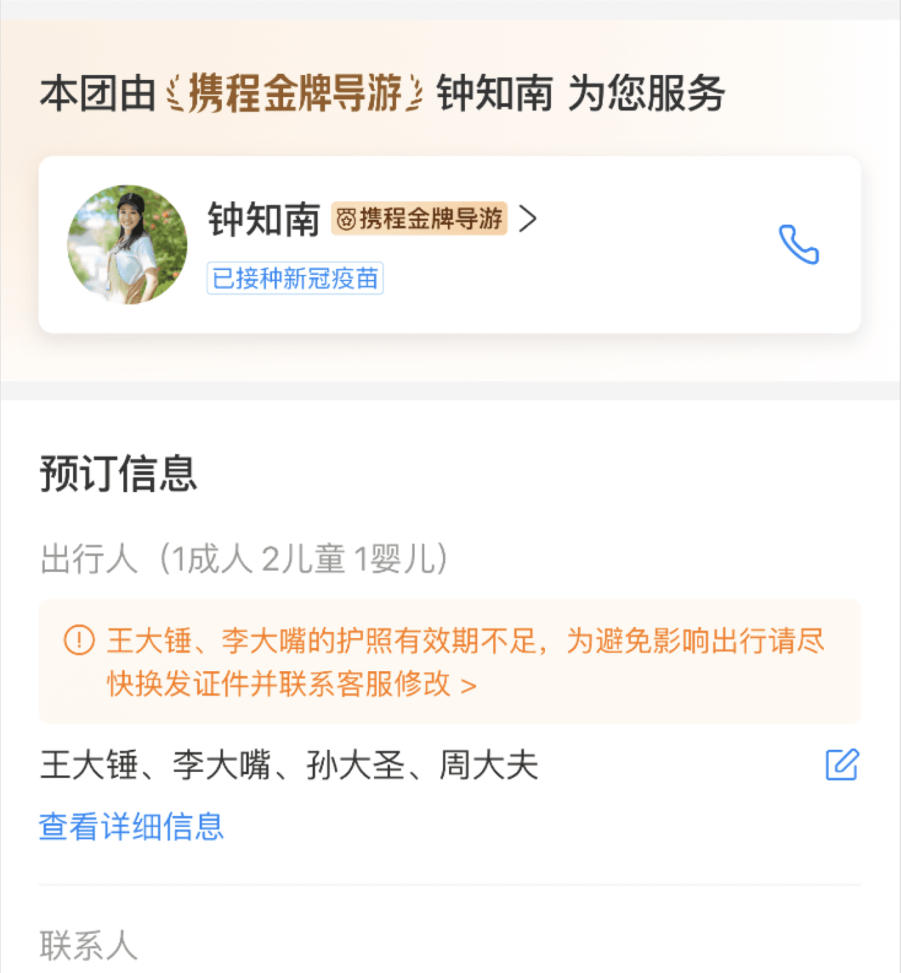 On order page, user can check all the resources in the group tour package, including flight, hotel, itinerary and guide. It’s frequently opened by users, with a frequency of 12.8 times/user.