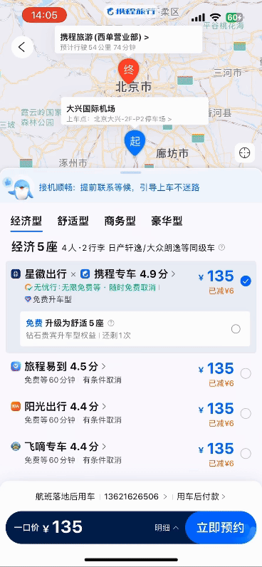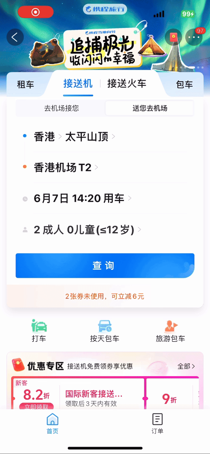 Reserve pickup service after ordered a flight ticket